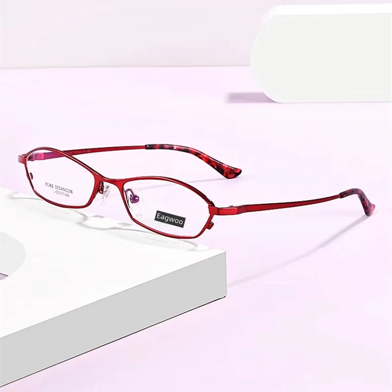Pure Titanium Women Glasses Designed Abnormal Shape Full Rim Spectacle High Grade Prescription Eyeglasses
